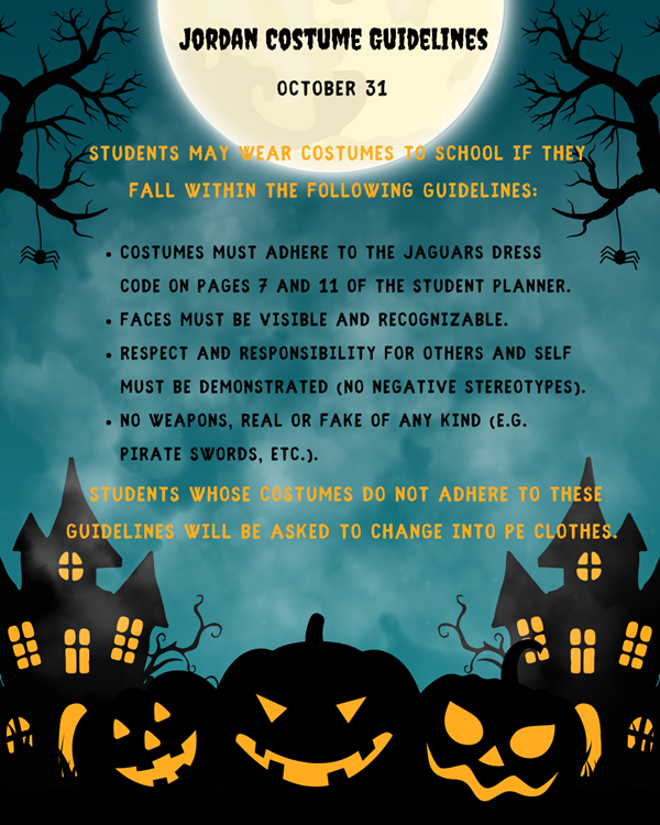 - Costumes must follow the Jaguar dress code (pages 7 & 11 of the student planner).